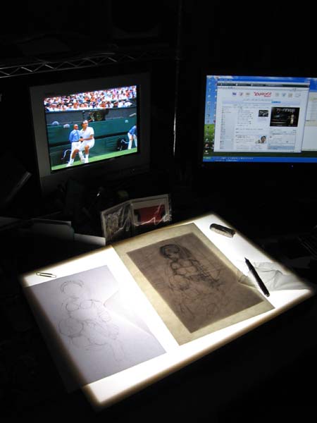 実は、トレース台のライトだけでも絵は描けるし、周りが暗い分集中して描くこと出来るんですけど・・・如何せん目が悪くなりそうで、長時間の作業には向いてませんね。何より目が疲れる(涙)