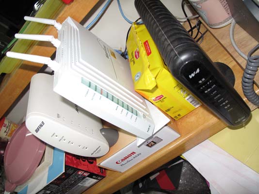 ●PSPバリューパック(本体&メモリスティック&ポーチ) ●外部出力ケーブル(コンポジット) ●液晶保護フィルム ●HORI交換パット ●HORI保護ケース ~ソフト~ ●TAITO ダライアスバースト ●SEGA ファンタシースターポータブル2 を購入した訳です、魔のカード分割マジックを利用して(苦笑) で、こんな具合になりました。 一部のアイテムは使ってません(TT)交換パッドは上からアタッチメントをシール止めするものだったのに気が付き却下。保護シールは貼った物の、クリア保護ケースにいれたら意味がないことに気が付く始末(苦笑) で、肩こり予防にTV出力をメインに考えてました。 結果はこれ ・・・解像度の関係か、TV出力でゲーム画面に切り替わると何故か小さくなるのですよ。 このTV14インチだから・・・ゲーム画面は8インチくらいなのか? それでも首の位置が下向きっぱなしになるのを防げるので肩こり予防には良い感じです。 ただ、問題は・・・チャット画面とか文字がぼやけて判断つきませんね(汗)携帯ゲームの画面引き延ばしてるのだから、あたりまえなのか?・・・TVだけでガンガンにプレイするのは難しいかも知れません。 で、ゲーム自体ですけど ダライアスバーストは一回:20分だけプレイしただけで PSPO2だけやってます。 少しでも仲間との遅れを取り戻そうと攻略本も買ったのだけど ・・・・・・攻略本はあまりの分厚さに挫折した(苦笑:800Pオーバーです) ・・・ゲームの攻略本はレイストーム以来の約十数年ぶりの購入だったのに、まさか「読む気にならない」などの結末がまっていただなんて。最近のゲームのデーターの濃さは凄いんですね、ホント。 で、PSPO2はオンラインで冒険できるのですが 僕の今のネット環境の無線は11aの為、WIFIが使えない ・・・WIFI使うにはその都度、PC上で無線機にアクセスして無線方法の設定を切り替える必要がある ・・・ってのはあまりにも面倒くさいだろ。 ってことで解決策 無線機を直列させた(苦笑) 1)右:富士通製ADSLモデム 2)中:NECルーター(11a専用:ルーターモード) 3)左:BUFFALO旧型ルーター(11b専用:APモード) 無線機二台使って、繋ぐのは僕一人・・・となんでこんな大規模な設置せねばって感じですけど、結局電話回線が台所付近にあって、電子レンジという2.4Ghz周波数の大敵が居るために、二台使わないと無線切れるんですよ。Buffaloのは旧型だけど拡張アンテナを装備させてるので11bなら高いNECルーターよりも高威力を発揮したりですよ・・・それでも電子レンジ稼働したら30秒で落ちるけどね(苦笑) そんなこんなでPSPO2に向けて万全の体制を取ったのですけど、 結局現在、腰痛のためにTVに向かってプレイできず そして、布団の中で寝っ転がりながらプレイの始末。 インターネットモードの方は、 平日電気付けてると母親が「今電子レンジ使って大ジョブ?」 となんども確認させてしまうために、 食事時間が絶対無い夜中にしか付けてない状況。 あとはPSPはハードウェアキーボードが無いから ソフトウェア上で十字ボタンを駆使して携帯みたいに入力するんですけど それがかなり難しいので なかなか参戦してない状況です。 ・・・まあ、ゲームにはまりすぎない環境としてはいいかもしれませんね。 そんな具合にPSPは一歩距離を置けた所にあります。 偶にストレス発散にネットにも出るので、 お会いしたらその時にはお気楽にプレイしましょう♪ 基本的に金・土曜の深夜がメインだと思います、宜しく~。 PR この記事にコメントする