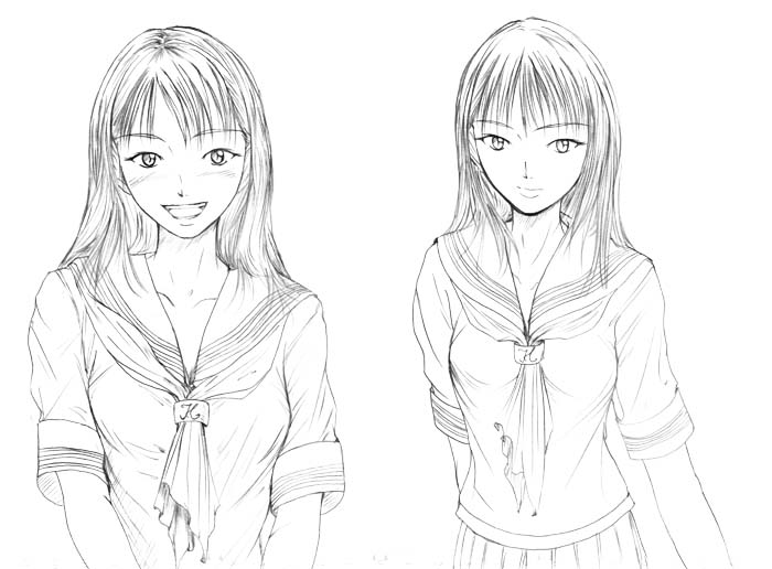 で、ちょっと筆を使う絵の依頼がある・・・・・かもしれないので(多分流れると思いますが)、「これは良い機会だから」と ●髪の毛を一気に筆で描く ●筆でホワイト を塗る この二つを練習に組み込んでいこう!!と挑戦することにしてみました。 今まで髪の毛はペンで主線全部描いてから、筆ペンで塗ってたのですが ・・・まずこの方法だと時間がかかりすぎるって事。 またホワイトにおいては、面倒くさいので修正ペンやらミスノンで、ガガっと目立つ所だけ液垂らす程度・・・あとはPCで・・・となにも出来ない状態でした。 ホワイト塗った箇所にスクリーントーンが貼れないこと(凹凸がそのまま印刷に反映されるため)、 あと、机が画材でごちゃごちゃになる・・・ってめちゃくちゃな理由で使わなかったのですが(汗) やはり「いつでも気楽にホワイトで直せる」って心構えが出来るだけで、絵も違ってくるのかなぁとは感じていたのです。 で、筆を実際握ってみると やはり、慣れない画材は難しい!!! 最初は「付けペンちがって、色んな方向から気兼ねなくっ描けるかららくちんでしょ」と思いきや、 しなり これがある分異様に難しいです。 髪の毛の描き方→作業時間が1/3に短縮、ホワイト入れることで髪つやがさらに楽に抱える。 白抜き→クロとクロの重なる部分も立体感が出る。 そう言う面でメリットが凄い大きいなぁとも感じました。 で、アナログで描くメリットは 「原稿の仕上がりが、非常に美しくなる」 「紙を手軽に回しながら描ける」って点ですかね? クロとシロの明暗が表に出るとホントに美しいと思います。 あと髪艶なんかでシロ使うと、境界線の所でうっすら青くなるインクの狭間がホント格好いいです。 でも・・・それが欠点でもある訳なんですけどね。 欠点 筆のかすれる部分がどう印刷に出るか怖い。 ベタの色ムラがどう印刷に出るかわからない。 今感じる点はそんなところでしょうか? それでもやってみる価値は有ると思いますけどね。 とりあえず、これもひたすら回を重ねたいとは思います。 ・・・でもスクリーントーンだけはやる気が起きないなぁ あれ、図画工作みたいなんだもん(汗) PR 9月はなんだかんだで、過去最高に絵を描いてたかもしれない月間でした。 似たような絵・・・ってか正面のバストアップばかり描いてた月間でもあり。 バストアップ大の苦手なんです、バランスすぐ狂うから。 そんな感じに、ひたすらに描きまくってたのですが、 上達のコツをつかむまえに、自分の絵に心底愛想尽かしそうでした(汗) アップしてないラフ画とかは大部分処分して、一区切り付けた感じです。 ラフ自体はどれも一生懸命描いてますが、 クリーンナップにはその時期の描ける物を載せてるつもりではあるので、 破り捨ててもあまり後悔はないのです。 ってか自分の絵はあまり見返すことないのですが・・・ 絵を方々はやっぱり常に再チェックとかして、課題研究されてるのかな? さあっ今月も目標を明確に打ち出しながらがんばってみたいものです。 ・・・・・・でないと、絶対絵を描かないよな自分 というのを痛感してる所です。 多分、漫画描きたいって気持ちなかったら、絵を全く描かない人だよ(汗) 規則正しく6:40起きしてた自分が・・・もう崩壊してきたっす。 そして、ここまで起きていながら BS漫画夜話の再放送観るの忘れてました(涙) http://www.nhk.or.jp/manga/ デカスロンが結構好きだったので、みたかったのですけど ・・・観ると単行本欲しくなるから、かえって良かったって事にしておきます(汗) しかし、珍しくBS本編の方でも久々に放送されるのですが、 ハチワンダイバー 蒼天航路 よつばと ・・・・・・このラインナップ是非ともみたい!! けど、引っ越してからBS入れてないんで、観られません 誰かがいつかビデオを貸してくれること期待してます!! ・・・嗚呼っこれだったら絶対見逃さないよ位、観たかったのにぃ・・・