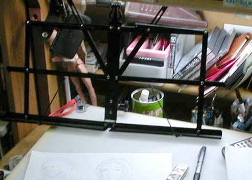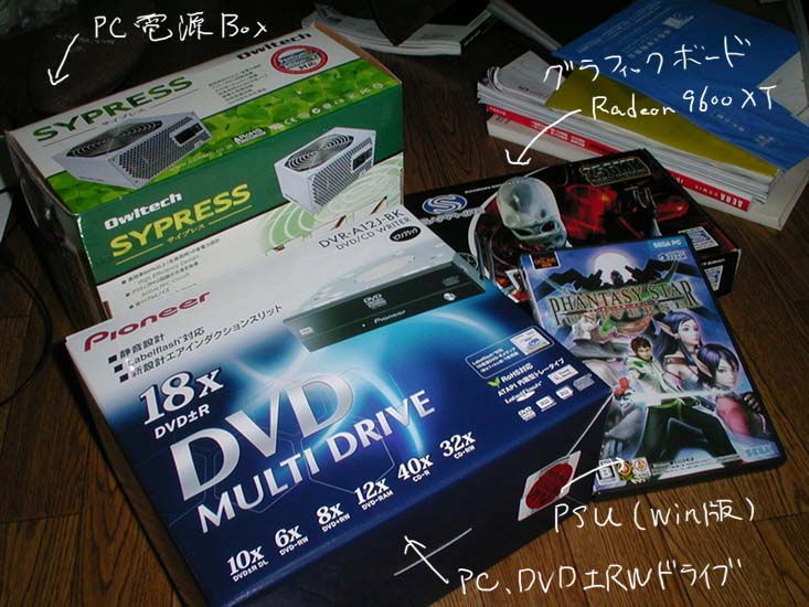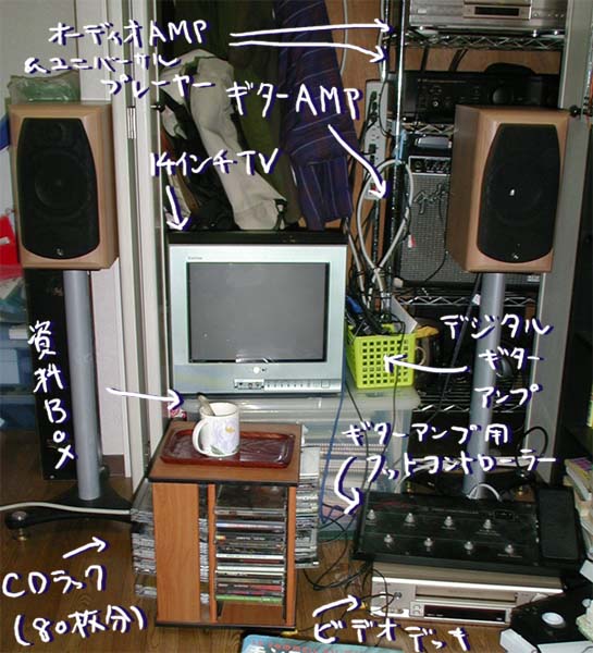 前からUPしようしようとしつつ、ずっとほったらかしにしていた写真を幾つか載っけておきます。 写真集とかA4サイズOVERの資料を参考にするとき用に購入、コレがなかった時は机に資料を置く場所が無く悪戦苦闘してたんですけど大助かりですね。 無論、ギター弾く時にもつかってますよ。膝の上に楽譜置かずに済むんで便利です。・・・・・・本当はスタンド式の普通の楽譜台が欲しかったんですけど、あれを於けるスペースが部屋にないので断念しました。 オーディオ機器とギターアンプを強引にクローゼットに収納させました(笑) もうギターアンプは置く場所無くてあんまり出番がなかったんですが、それだと見る見るうちに腕が下手になるので(自分がどういう音を弾いてるか、耳でちゃんと捕らえられない為)、この際思い切ってみた所、なんとか上手くいった次第です。 本当はギターアンプをラックに積んだら、低音死んじゃいます。 ・・・けど、デジタルアンプとの併用(デジアンプ→ギターアンプのパワー出力部に)で今まで低音効き過ぎなセッティングだったので、上手い具合に相殺され、なんか反響音も良いリバーブになって、音の面でも棚ぼたみたいな成功感があります。・・・あとはマンション住民からの苦情がこない事を祈ってます。下の階のピアノよりはずっと静かなはずだよなぁ・・・っと(汗) しかし・・・調子に乗ってでっかいフットコントローラーを出しちゃったり、今まで金属ラックの上に積んであったCDラックがあぶれてしまったり(クローゼットの高さに入りきらなかった)、部屋はやはり狭いままです(涙) まあ、ギター弾けるだけでもよしとしたい。弾いてる度にビデオデッキの寿命は縮んでると思いますけど(フットコントローラーをガシガシ踏む為) ・パイオニアの新型DVDドライブ (二層式でないと二時間番組がDVD化出来ないから) ・電源ボックス (二千円位で特売だったから) ・PSU (実は買ってた悪魔のオンラインゲーム(汗)) ・グラフィックボード (Radeon 9600 XT 256MB AGP /ずっと値下がりを待ってたらとうとう8000円になってた) 二層式はたまりにたまってた音楽ライブ映像やサッカーなどをメディア化出来る待望のアイテムだったんですが・・・・・実際は・・・・・・・やっぱり面倒くさい(苦笑) 気力無くてWCなんかは2~3試合しかDVD化しておりません。 メディア代が下がった事だけが唯一の救いです。前までは一枚千円だったからなぁ PSU・・・・・・実は買ってます。スンマセン悪魔のゲームです。多くは語らない・・・絵を描いてなかったら、まず間違いなくこのゲームをやってたんだなと思ってください(汗) ===================================== 以上、部屋周りその壱。 その弐では漫画単行本をレポートします。 ・・・・・漫画単行本、結構な量買ってたんですよ実は(汗) この絵アップする日付を入れて、今日が自分の誕生日だと言う事に気がつきました・・・29歳、微妙すぎる年なので全く嬉しくない・・・というか悲しいです(苦笑)就職とか厳しいんで(汗) それは置いといて。 絵を描き始めて9年という事になっちゃいます。 ずっと「描き始めが遅いから」が決まり文句だった自分も、いつの間にか9年。もう言い訳はできない年数になってきましたよ、こちらも(汗) 個人的にポジティブに感じるのは 「9年たった今でも、ひとつ描けば何か必ず発見があり、上達に繋がる」 っていうこと、限界とかそういうのは全く感じない 裏返すと 「9年間なにやってたの?」 って事でもあるんですけど(汗) 成長は遅いです、でも頑張ります。 でっ、29歳の目標は「成果を形として残す」です。 いま何となく決めましたー。あうち (1) 1番最初のラフ (2) 1をひっくり返してトレースして出来た絵(没) (3) 1のラフを元に10回位描いて出来た顔正式案 (4) 2と3をくっつけた怪しいトレース絵(完成) そうして出来た4の絵ですが、表情とかみると2の方がずっと良いだろって罠にはまりました(涙)・・・造型・雰囲気的だと4でないと使えないんですけど、なんか比べてしまうと「どうしてこんな絵に負けるんだろう」と悔しがってしまいます(苦笑) 同方向のトレースは「なぞる作業」になってしまうので苦手です。 トレース台は多用しますが、基本的には「ラフを裏返してアタリとして利用」なのです。 ですから、3の絵みたいにラフ用紙に全部きっちり描き上げてしまうと、本番の紙に描く際は非道く苦労します・・・というか、描けないです(涙) 久々に何度も何度も描き直して今ひとつだったので、その悔しさを書き留めてみましたっ ・・・くっそう!! あとはこんな風にあれこれ悪戦苦闘しても、密かにコンマ数ミリの線とかは他の人には全く同じに映ってしまう・・・意味あるの?って疑問も常に頭によぎってしまいます。そういうの適当にしてたら上手くならないのでしょうけど・・・偶に時間の無駄?と弱音を吐いてしまう事多々ありデス。 ・・・・・、だってPC上から確認したら・・・・・・描いた当人が「どっちもいっし