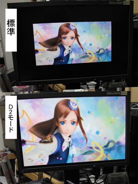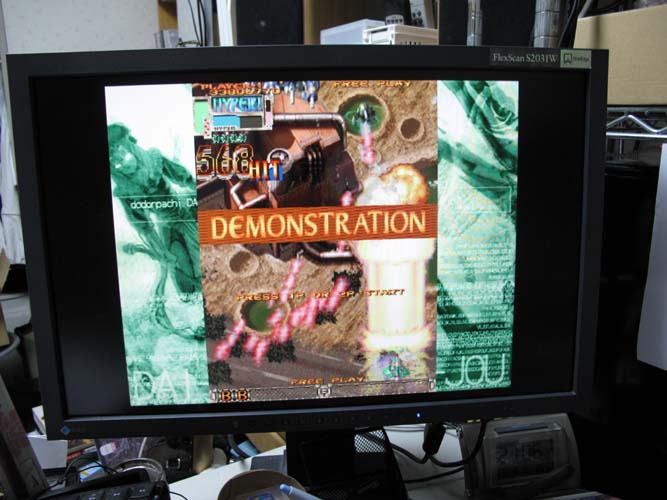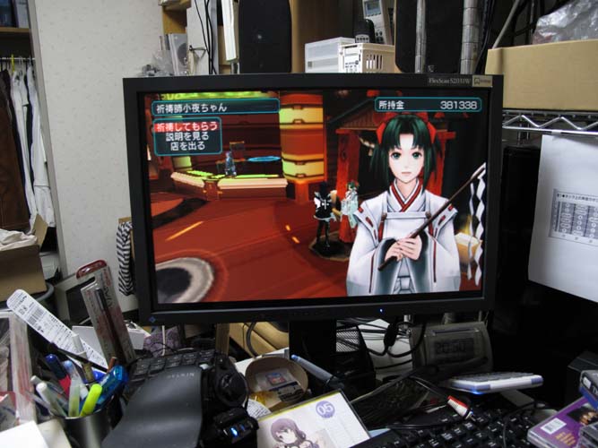 行ったのですが、その結果・・・ ○TVの電源を全く付けなくなる という副作用が発生。 元々TVはスポーツとドキュメンタリー以外全く見ないと言って良いのですが、 座る位置を変えないとTVが見づらいという場所に設置した途端 面倒臭くなって全く見なくなる始末。 サッカーワールドカップも控えてることだし、PSPはモニターOUTでプレイしないと肩凝るし ・・・ということで、この二ヶ月で思い切って買ったのが ●IOデータ テレビチューナーボード (一万2千円) 取り敢えず、こいつを導入でTV・・・ワールドカップに立ち向かう事に成功! 画面はデジタルだからサッカーとか綺麗で吃驚。 ・・・ただし、ソフト激重いっす。 あと録画するとHDD容量を激しく削るため、 新しいHDDとブルーレイドライブが欲しくなってしまうところが恐るべしです(汗) で、テレビを捨てるべくもう一つ導入したのが、 ●マイコンソフト(電波新聞社) アップスキャンコンバーター | XRGB-3 (3万円) http://www.micomsoft.co.jp/xrgb-3.htm かつて、マイコンBASICマガジンを立ち読みする度に憧れていた同社製アップスキャンコンバーターですが、液晶テレビとどっちにすべきか悩んだ挙げ句 ●液晶テレビを並べるスペースがない (それならPCモニタでデュアルにしてしまう) ●手持ちの機器は全部D端子接続止まり って事で、過去の遺産とスペースを活用すべく、 ほぼ勢いで買ってしまいました。 ・・・勢いでなきゃ三万もするアプコンなんて買えませんよ(汗) コンポジット1>VIDEO D端子1>DVDプレイヤー D端子2>PS2 D端子3>PSP という風にフル活用、 その為にD端子ケーブル代だけで更に5000円飛びました(涙) が、その甲斐あって、コンポジットと違いセパレートに色信号を送れるD端子の綺麗さはホント段違い!!D端子に切り替えて本当良かったなぁと思わされた。 あとはXRGB-3のナイス機能 PSP向け機能>画面二倍ズーム 思いっきり引き延ばすので文字が見えるのか心配だったのですが、その点も大丈夫。 やはり高級アプコンだけあってかなり性能抜群であります。 ・・・ポリゴンの部分のカクカクはどうにもならんのだけどね、首疲れないので僕的には物凄くオッケイらいんです。 で、DVDも許容範囲の画質 ・・・これなら自分的にはOKです。 ・・・が、 シューティングゲームの壁だけは分厚い(涙) アプコンって事で機械内でアナログの映像信号をPC用にデジタルエンコードかけてるわけでして・・・その為、 2フレームほどの遅延 が発生するのです、このアイテム。 脱初心者程度のSTGプレイヤーである僕にとって 2フレーム=約0.03秒 ・・・は影響無いよなぁーと思ってたんですけど、 感覚ちょびーーーーーとだけ滑るのを覚えたり、 あとはボム抱えたまま死ぬ率が高くなりました・・・緊急回避のボムを遅うとするスピードが僅かに遅れて死亡するのです。 なんで、STGとか格闘ゲームとかリアルタイムにシビアにプレイするものですと、アプコン経由はやはりダメかも知れない・・・(涙) 僕の場合は、それより僅かに早く思考動かせばいいだけの話なんですけど(苦笑)、既に最大の能力でプレイを発揮してる全国LEVELゲーマーにはちょっとキツイアイテムです。 まあ、そう言う人はアプコン以前に液晶テレビでゲームしないと思いますが(^^; あと、狙っていて発揮できなかった能力が 持ってるモニターがピボット対応だったので 「これで縦画面のシューティングゲームをゲームセンターのような感覚でプレイできる!!」 と目論んでたんですけど、 ご覧のように、ナナオモニターの回転方向は決まってるため、 まず怒首領蜂では逆方向になりアウトでした。 ・・・狙った方向に表示できるゲームってどれくらいなんだろう。 未だにPCモニター縦表示機能の真価を発揮できなかったりします。 で、実際の総額・・・4万7千円 ・・・ ・・・・・・あれ? ・・・・・・ これD端子とHDMI端子装備のPCモニタが手に届く予算っぽいような(汗)