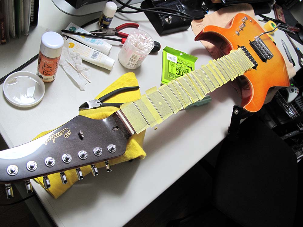 「HDDは二年くらいで故障が怖くて買い換えてしまう」 「OSは二年ぐらいでシステムが不安定になってそうで再インストールし直してしまう」 「三年に一度はなんかパソコンパーツを大規模に交換したくなる」 という三つの悪循環により、毎年OSの再インストール作業をするはめになるのですが、 今年は「PCケースに防音シートを貼り付け、エアダスターをかけたら何故かセーフモードでしか起動しなくなってしまう」という間抜けな事象が発生しました。 掃除しただけでOSが不調になるなんてそんな馬鹿な!・・・と唖然としてしまったのはいうまでもなく。 とはいっても実際起こってるのだから困ってしまうところです。エアーダスターのかけ方がまずくてパーツを傷めたのか?起動時に途中フリーズしたから起動構文がふっとんだのか?1時間くらいいろいろやってみましたがその原因をつかめないままだったので、諦めてOSを再インストールすることになったのです。・・・・・・が、 そうやって再インストールしてもグラボのドライバーを入れたところでまた起動時に止まったので、ここでようやく「グラフィックボードの補助電源コネクターが緩んでた>電源が足りずにフリーズしていた」事が発覚。いらぬリカバリー作業だった事が判明し心が砕けそうになりました(汗) 幸いデーターはデスクトップ含め全部違うHDDに入れてたのでブラウザのブックマークとATOKの辞書以外はダメージを受けず。ソフトのアクティベーションも何とかうまく行って一安心。 ただし復旧自体はやはり一日かかってしまい連休はこれでつぶれてしまった感じです(涙) 逆にこれでしばらくはリカバリー作業しなくていいと思えればいいんですけどね(SSDの寿命がこなければ)。あと改めてたいてい不調の原因はグラボだなぁとも痛感。グラボの電源要求はシビアすぎます、ホント。 そこまで苦労をかさねたPC作業事ですが 肝心の防音シート「防音一番 オトナシート」。 ケース両サイドパネル+天板+フロントパネル それとHDDマウンターに少し貼り付けたの効果のほどは ○プラス点○ PCケースの共振を押さえることに成功 >ケース全体のビリ付き音がなくなる。 >HDDの「ガタン」という大きな動作の際のケースの不響音も消える。 ×マイナス点× ファンの回転音自体はあまり変わらず聞こえる >ケース共振面は吸ってくれても、シートが直接触れてない部分の 動作音は特に吸ったりしない? >夏場、ケース内部温度が心配かも? といった感じです。 僕自身は吸音の方の効果もかなり夢見てしまってたので、効果半分なところがありますが、それでもケース音のびびりが無くなったことは万々歳!!アルミなのにスティール以上の騒音耐性がついたことは喜ばしいです。(直接シート張ったパネルを叩くと効果が絶大なのはわかります) 5枚セットが2千円以下で買えるので結構お得でした。しかし、ファン音はやっぱりファンの回転数落とすしか方法ないんだなーというかんじです。当たり前といえば当たり前なんですけど(汗) これでPCケースもOSシステムも落ち着いて動いてくれればなーと願います(^^; 疲れましたー 先日の調整・磨き作業の際に7弦のオクターブ調整用ネジのネジ山を見事に粉砕してしまいました、アウチ。