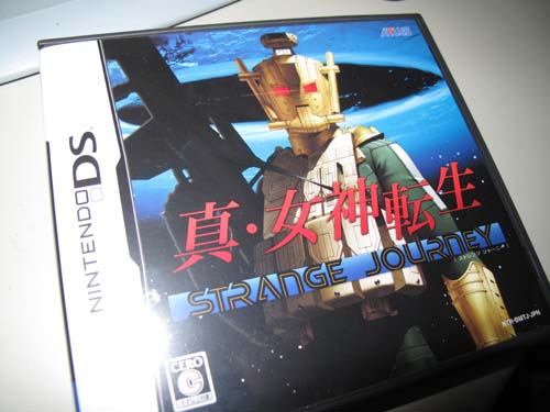 「少しでも通勤の苦痛を和らげるように」 「今使ってるは2GBで、曲の入れ替えが面倒だから大容量な物を」 と言う訳で買い換えました。 容量が2GBから16GBにアップした喜びは勿論だが、 それ以上に効果的なのがノイズ・キャンセリング!! これがあると、電車内での嫌な輩の話し声がシャットアウト出来るのですよ。 社内アナウンスなどは聞こえるんだけど、人の話し声は遠くでラジオがかかってる様な感覚で、かなりの優れものです!!・・・反面、外でノイズキャンセル付けたままだと、自転車やら車に跳ねられそうなのが怖いです(苦笑) 12月を仕事を辞めずに乗り越えたのはこのウォークマンのお陰といっても過言ではありません。 まあ、キャンセリング=他社ヘッドフォンが使えないなどの制約が大きいですが、それでも通勤のストレス解消という意味で十二分に効果を発揮してくれてます。 2) 中古PS2本体+新品PS2コントローラー たまーに鬼畜シューティングゲーム「[怒首領蜂大往生]をやりたくなる病」にに長いことかかりっぱなしで、ついゲーム屋で見つけた「本体、ケーブルのみ、スロットカバー破損のPS2本体=3980円」を見つけて、新品コントローラー付けて衝動買いです。 幸い、メモリーカードとゲームは「友人の家遊びに行ったらプレイしよう」と取っておいたのでw、それくらいの出費で済みました。 で数年ぶりに自宅にで怒首領蜂大往生をやった感想・・・ ●PS2コントローラーの十字ボタン・・・操作しづらい!! ●下手くそになりすぎてて、一周クリアも絶望的 ・・・一日で冷めましたw でも満足したよ。 それから一週間に一回くらい息抜きでプレイしてます。 3) ゲーム [ 真女神転生 ストレンジジャーニー] (任天堂DS) で、その日はこれが売れ切れで格安中古PS2本体を買ったのですが、 結局それでも物欲は収まらず、仕事最終日に違う店で購入w 最初、このヘボヘボジャケットに・・・余り期待してなかったのですが、 ゲーム自体は真女神転生の名に恥じず、かなり良い出来で楽しめました!! DSプラットホームを考慮して、一般ユーザーでもさくさく進める仕様になりつつも、「ペルソナシリーズ」みたいな軟弱仕様ではなく・・・真女神転生3に引き続き内容の詰まったストーリー・世界観。と出来映え的には素晴らしいものがありました!! ただ、ラストだけが・・・いつものマゾ仕様で、ボス倒すためだけにレベル15個挙げるのは面倒くさいだけだった・・・もう僕が年寄りな証拠なのだろうか。とても二週目する気には慣れませんw で、DSだから・・・肩に思いっきりくるんですよ。 最後布団に入りながら出ないとプレイできませんでした。 これプレイして「やっぱり長時間の携帯ゲーム機は首と肩の位置が固定されるから危険すぎる」と思わされました・・・PSP&ファンタシースターポータブル2どうしよう・・・・二月に買う予定なのですけど、今の所少し健康面と相談中ですw 年末はコミケの為にホントにどたばたしていましたが、