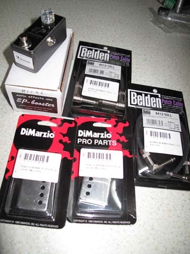 まず、ギター自体は年始めから良い感じで取り組んでいます。 久々にAngraと言うバンドの速くて左手のフォームがおかしいw曲にとりかかり、 練習ではキチンとメトロノームを導入中。 引っ越してきてから初めてかもしれない ・・・とにかく今は上達したい気持ちが強いのだ。 って気持ちにさせてくれたのが、以下のアイテム。 パッチケーブル ALLPARTS BELDEN8412/15cm/LL パッチケーブル ALLPARTS BELDEN8412/50cm/LL エフェクター Xotic Guitars EP BOOSTER (エコープレックス) ピックアップカバー Dimarzio GG1600N/フルサイズハムバッカー用ニッケル ピックアップカバーDimarzio GG1601N/フルサイズハムバッカー用ニッケル 買った、買ってしまった・・・理由は ついつい物欲に駆られて覗いてしまう楽器店WEBサイト巡回に終止符を撃つためである ・・・ていうか、ギターもう1本オーダーしそうなほどギター妄想に駆られていたので(苦笑) この度、取り敢えずは自分の今改善したいポイントに対してのアイテムを揃えました。 ポイントは ●バッキングとソロの音色を音量的に使い分けたい>エフェクター (※エフェクター増設に伴いシールドコード購入) ●ギターの外見を格好良くしたい>ピックアップカバーの導入 この2点を含めた買い物でした。 でまずエフェクターの前にシールドコードですが、 シールドコードは絶対メーカー合わせた方がいいですよ。 理由は「その方が音の組み立てが予想しやすい!!」 シールドコードは「イコライザー」と言えるぐらいそれぞれ音が違うので、・・・どれがいいっていうより、たとえば3本のうち1本違うメーカー入ってたりすると、そこでさらに信号変化が起こるから・・・音作るとき頭こんがらがると思うのですよ。 で、僕自身は今回BELDENの8412で統一したけど、そうしたら前に使ってたLIVE WIRE(これも高い、確か30cmで4千円)で首を傾げていた音のギクシャク感が解決しましたもん。 ・・・・・・逆に効果なかったら、約5千円出した甲斐がないですって(汗) はぁああ、ケーブル2本でゲーム1本買えるんだねw ※ただBELDEN8412は中低音のブーストが少し強めです、・・・同じBELDENでもう少しフラットなシールドに半年後買えようと思います。 で、問題のエフェクター EP-Booster エディー・ヴァン・ヘイレンなどが使っていたエコープレックスを意識して作った仕様で、 ●エコーをかけて丸みやサステインを増やす&音量面で20dbアップ =ソロフレーズに持ってこい って仕様なのでおもいきって音も聞かずに買いましたw・・・音聞けよw というのは、エキゾチック自体はプロの間で評判のメーカーであることと、違うエフェクターならアンディー・ティモンズのライブで味わってるのと、・・・WEBでサウンドサンプルがごろごろ転がってて「こいつならいけるかな」 と思った訳なのです。 ~結果~ ●エコー感で音が太く厚みがある感じになる。 ●かといってエフェクターならではでおこる「ニュアンスの消滅」は最小限に止めている上品仕様 ●音量もカクンと上がるので、ソロ用に持ってこい! ・・・おおっ素晴らしい、素晴らしい結果ですよ!! ・・・・・・・おれんちじゃなきゃね。 あの・・・僕の家はマンションなんで、ギターアンプのボリュームは「カクンと大きくなる直前」で止めてるわけですよ。 今の40Wアンプならば Vol 1.2位 前の100WアンプならばVol 0.6位 そんな風に直前ギリギリにキープしてる状況で・・・・エフェクター効果は+20DB 一気に大音量!! ・・・ホントにプロ仕様だって、もお。スタジオとかライブなら最高にいいデバイスだよぉ。 でもマンションだとコレ辛いって、信号でかすぎだって・・・ かといって、このマックスVolに併せて音作りをすると、バッキングの音がしょぼすぎるし・・・只今どう使おうか思案中です(TT) もしかしたら、歪み用エフェクターをもう一台同じの買って並列スイッチング使用するかもw・・・もうアンプ買えよって感じだなぁ(汗) あとギター自体のドレスアップ計画で、 ずっと気になってたボディーとピックアップのスキマを埋める作戦としてピックアップカバーを買ってみたんですが、仮にかぶせてみた結果が これ ダブルカッタウェイで24フレットのギターには 正直似合わないことが判明 ・ピックアップ自体がでかく見えすぎる ・ピックアップの位置が両方近すぎて、バランスが悪い これも合計4千円ですが、見事に失敗。ギター用品段ボールの中に寝かせる事にしました。 ああっこうなると、ピックアップの金の台座のメッキを剥がす作戦位かぁ・・・でも、金メッキって剥がすとノイズ多くなるのかなぁ・・・こればっかりは素人じゃわからんし、興味半分で試すわけにも行かないので、今度プロの方に相談してみますよ(^^; 1) Sony | Walkman Sシリーズ [ NW-S745 ]