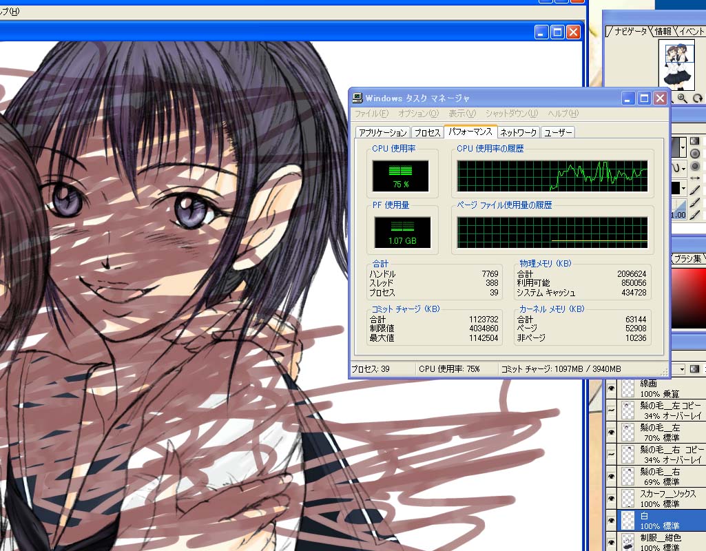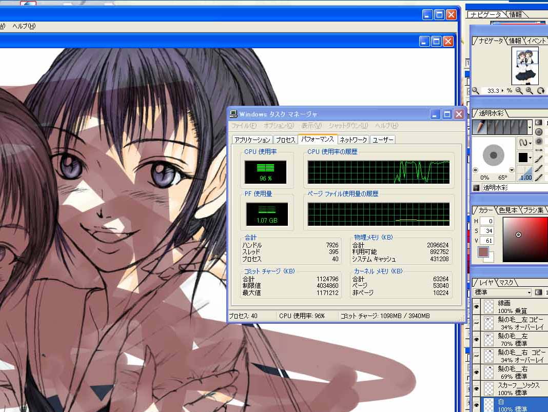 まずCG描きさんの世界も大分変わった物ですねーと驚いております。 昔は 「色塗り=ペインター、補正=フォトショップ」 が定番だったのですけど 何か近頃は SAI 最近必ずと言っていいほどこの名前を目にします。 特集ムックとかを本屋で見かけて、人気あるソフトなのは薄々気が付いてましたが、 表紙がロボットの絵な物だから てっきり六角大王の仲間のポリゴン作成ソフトだと勘違いしてました(汗) で、僕も水彩塗りとかしたいんで いきなりSAIを買ってしまおうかと思ったんですけど (SIOの基本=気になったらまずすぐ買って手に入れますw) ・・・おいおい待てよ、俺って数年前にもDraw系ソフト買ってたじゃん!! そう、数年前にはやったDraw系ソフト「Open Canvas」 これの3 Plus買ってたのすっかり忘れてましたよ ・・・そして確か、 買って二週間で使わなくなった苦い思い出まで記憶が蘇ってきた。 (基本的に色塗り超苦手なんです僕は) で、SAIをいきなり買ってしまう前に、 このソフトで別にいいんじゃないの??? 的な部分があったり、 少しだけ動作検証してみました。 画面は最新版である4のお試し版 ・・・ついでにアップデートしようかも含めて検証してみました。 ■検証■ ========================================== Win XP Pro | Athlon FX57(2.8Ghzシングル) | 2GBメモリ | Geforce 7600 GT (256MB AGP4x稼働)| intuos 2 100MB位ある解像度600dpiのフォトショップFileにて ========================================== まず・・・PSDファイル使うとファイル操作自体は 本家フォトショップ4の数倍重いっ!! ファイル開くだけで30秒以上待つかもしれない (まあ他社データだから当たり前ではあるでしょうが) [プレビュー] まず「アンチエリアス表示」をオンにしてるとフォトショップの三倍は重い(涙) 外すと重さが半減するから結構許容範囲内かも それでも倍の重さあり。 アンチエリアスも単なる「表示」のみなので、外した方がいいと思う。 [描写] ペンツールは水彩モード油彩モードと様々だから 全然違う絵の塗り方が出来るのが便利 ・・・ってDraw系ソフトだから当たり前なんだけどw ペン描写速度はフォトショと同じくらいのストレス? いやっペンサイズが同じならば、10%ほど軽いかもしれません。 ただしっ ・・・CPU占有率100%に達するともう話にならないっ!! 太いペンだと流石に100%なりますが 描写が一気に遅れだし、まず丸い線描けなくなります(涙) まあ、こんなでかいサイズで描写することなんて殆ど無いから いけるといえばいけるんですけど・・・ 1200dpiとかで絵を作ってる人だとアウトじゃね?これって。 そんな感じの重さです。 なんか五年以上前のPCの性能思い出させられた重さですね(汗) で、線自体も若干角張ってるかもしれませんね。 僕はPCで線を引く事自体を諦めてるから関係ないんだけど、 ALLデジタルで絵を描いてる人だと、これは結構辛いんじゃないかなぁと思います。 【選択範囲】 ・・・なんだこの重さは!!重いっ!!重すぎる!!!!!! フリーハンドで描いてから確定までに5秒以上またなきゃいけない上、 その選択線じたいが超角張ってる・・・こりゃダメだ(涙) 結論・・・ sio的には色塗るだけなら使おうかなぁ。 というのも、 検索かけたら結構SAIとOpenCanvasの検証行ってる人多いのですよ。 で、皆口をそろえて 「OpenCanvas重すぎ!!SAI軽すぎ!!」 との反応を示しております。 なんかALLデジタルの人が今大半だから そういう意味では圧倒的にSAIなのだと思う。 ただし、僕の場合 「新しいソフトで一から操作覚えるの面倒くさい」 というのと、OpenCanvas自体7千円払って買ってるし 色塗りだけなら、そんな問題も無いし、水彩的に塗れるし フォトショップと共通操作部分多いし って事で、 なんかダメダメっぽいけど納得できました。うん、納得したなんとなくw まあ、それ以前に「フォトショップだけでいいじゃん」 って案も当然あるんですけど、 水彩塗りで手抜きしたいんで、違うソフト使いたいんですよ(汗) あともう一つの理由が フォトショップ4・・・CPU占有率100%が続くと プレビュー画面壊れていくんですよね。 画像データ自体が壊れるわけでないので、 (動作を確定させると元に戻ります) 我慢すれば・・・とは 思うんですけど、でもそれでも 描いてる途中で画面乱れて何描いてるか分からない状態は困るんですよね ・・・ただでさえ僕はパソコンで絵を描けない人間だからきついのだ (PC画面見ながら手元で線を引くってのが出来ないのです) って事でしばらくは 色塗りOpen Canvas 補正 Photoshop4 ・・・でも、実はコミックスタジオ制作元のセルシスが今度発売する Drawソフトが超気になってたり(コミスタ軽いんだよっ) 「Photoshop CS4って実は高いグラボと物理演算カード載せれば、今の状態より素晴らしいんじゃない?」 みたいな物欲モードは相変わらずです(苦笑) 今年に入ってからですが