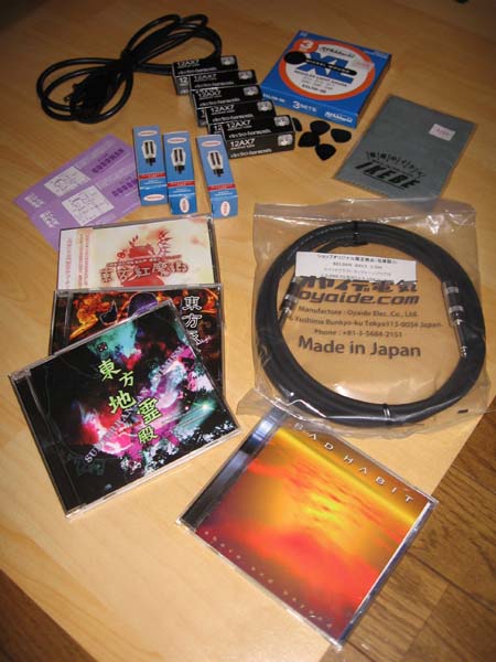 まずいきなり結論から言えば、 回路部分の不良確定 って事で購入した楽器屋さんに送り返して再メンテナンスしてる所です(涙) 結局プリ真空管全部交換してテストしたんですけど、 ○一日数回プリアンプ部の電源?が落ちる ○リバーブ回路周辺の異常 (リバーブが効かない、ノイズがどんどん乗り始める) この二点が決定打で初期不良対応して貰う事にしました。 流石15年以上前のアンプってなるとコンデンサーとかも半壊してる可能性もあるから、 やっぱり素人が手を出すべき代物じゃないよなぁー、と痛感しております(汗) しかし、なにぶん、この価格帯でこのレベルの音は 何処探しても見つからないので、返金ではなく修理を選択です。 ・・・って事で普通のアンプが無い状態です。(Fenderは捨てちゃった) ヘッドフォンで弾いてますね。かなり寂しいギタリストやってます(苦笑) まあ、治ってくれる事のみ祈ります。3年はもって欲しいものですから。 で、真空管自体のレポートも付け加えておきますと (・・・・・説明入れると超長い文章になるので割愛) まず全く同じ規格・生産地の真空管でも 新品に取り替えるだけで音は思いっきり変わる。 前のが古ぼけてたなぁと感じられる位、全体的に音が前に出てきます。 さらに音はガラリとかわります!! 基本的に生産地特有の音色に基づいてはいるのですが、 (ロシア産は決して「明るい」と言えない、どこかもっさりした「吹雪とウォッカ」なサウンドですw) 個人的には凄いバランスが良くなった感じです。 ハイからローまで音色が上品になったって印象? この差があるなら真空管に拘る必要は十分にありますね。 ただ、増幅部分のパーツだから、アンプ自体の根底は変わらないです そこだけは要注意。あくまで数あるパーツ部分の中の一部ですから。 でも、面白い世界ですよ。一年半後また試してみます。 PR 半年ぶり位に秋葉原行って来ました。