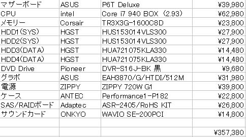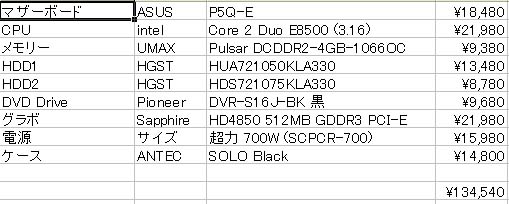 intelのNehalemがcore i7という名で登場しましたね。 個人的に今回でメモリーコントローラーがCPUに内蔵されるというところから 「数年に一度のインテル転落アイテム」と去年から思ってたのですが、 ・・・今回はAMDが勝手にコケた恩恵で、じっくり開発した結果なのか、 Core i7君は見事に輝かしいデビューを計れたみたいですよ。 デットポイントさえなければ 「4コア + HT機能搭載 = 疑似8CPU稼働」 なんという能力っ!!疑似8CPUってなんだよ。サーバーじゃんw 一つの時代の最終形態を提示された感があります。 こっから先は64bit OSとヘテロコア・・・一つ先の時代でしょうから 逆に言うと今こそが「PC組み替える時期!!」 と感じるわけです。 まあ、僕はマルチスレッドを駆使するアプリなんかつかわないので 2コアで十分すぎるんですけどw とりあえずは 「壊れづらい」 「動作が凄い安定する」 「今使ってるアプリケーションがサクサク動く」 この三点を念頭にざっと見積もってみました所 ~パターン1 各パーツに安定性と速さを求めよう~ って・・・13万だぁああああ!?高いよ、それじゃあああー!!(><) OSなしで13万ってかなり高いですよ。 実はこれまでのPC自作・・・一回の組み立てに出した金額で十万行った時一度もないんですよ!! とてもじゃないがこれは・・・きつすぎる。 だって一ヶ月分の給料をまるまるパソコンに費やすってことではないか!! びびって再見積してみました。 ~パターン2 普通の人よりちょっと各パーツが良い編~ おっ十万切った!! いやっ、これなら安い店とか探せば8万円代で揃いそう!! と・・・ちょっと安心しました(^^) でも、逆にいうと 「少しだけ安定と速度を求めたら、プラス五万円」 なんですね、・・・パーツの組み方もなかなか考えようデスなぁ。 五万有れば、どこかその箇所おかしい時に買い換えても安いじゃんって話じゃないですか(苦笑) でもPCの場合、再インストールに遭遇したら悪夢ですからね どこで金を使うかは・・・やはり考えようだと思います。 さて、それでは春に向けて少しづつ金を貯めていきいます、うん。 ・・・だって今のPCだと多分来年の夏壊れる・・・きっとこわれる(><) つぎはぎマシーンなんで、もうハード面もソフト面も怪しいんですよ(涙) ・・・で、余談ですが 「もし安定性と速度を出来る範囲で求めたらどうなるの?」 「憧れのシリアルアタッチドSCSIのHDDをRAIDで組んだらいくらになるの?」 と好奇心で見積もってみました所 ~パターン3 プロユーザー的ブルジョワ構成~ 30万オーバーって・・・この値段はあり得ない!! 例えアフタヌーン四季賞で90万とっても、作る気にならないぞこれは(苦笑) ・・・ひええぇええ、まだXEONのような2CPUシステムに持っていって無いのに こんな値段なのかよぉ。 ってかこんな見積もり作った時点で 「こんな凄いPCつくっても・・・コミスタでやる事って、墨塗りとトーン張りだけじゃん」 って僕には全く意味のない世界だと思わされました。 ・・・・てかこのマシーン作る前に まずインターネットをADSL8Mから光に代えますよ(苦笑) ADSL8Mなどつかってる貧乏人なのに、なんでこんな夢を見るのでしょうか、人間って(^^; ・・・と貧乏なのに駅構内にて 「お茶にごす 6巻 (西森博之 :少年サンデー)」 というコメディ漫画の単行本を購入しました。 で、一秒でも早く嫌な事を忘れたい!! と電車の中で読み始めたら 一分で笑いが堪えられず撃沈してしまう始末 ・・・わざわざ駅構内で買った意味無いじゃん(汗) すでに単行本読み始めてるので、先が気になって仕方がないのに・・・読んだら最後笑いが止まらないから駄目!!・・・って自問自答をひたすら電車の中で繰り返し。 過去にも何度かやってることです、やるたびに「コメディーギャグは絶対公共で読み出すな」と痛感してるはずなのに。 成長してないなー俺・・・と一瞬こんな所で実感しました(^^; 痛感するのは、落書きばかりの数週間だったから、線を書く上での手の使い方の感覚が鈍いのと、絵自体のバランス等も感覚鈍いのと、・・・自分の絵のディフォルメの仕方自体を忘れかけてる事・・・と、言い出したらキリがない(苦笑) 離れていて得する事など何もないですが それ以上に戻ってこれたって状態を良しとしてみます。 あとは仕事に慣れてくれば以前のようなペースで書き連ねられると信じて、頑張ってみます!! ホントはペン入れまでしたいのですが、今は下書きだけでも凄い時間がかかってるsioでした。 おかげでデザインとか無駄に考える事無くなっていいかもしれないですけどね(苦笑)